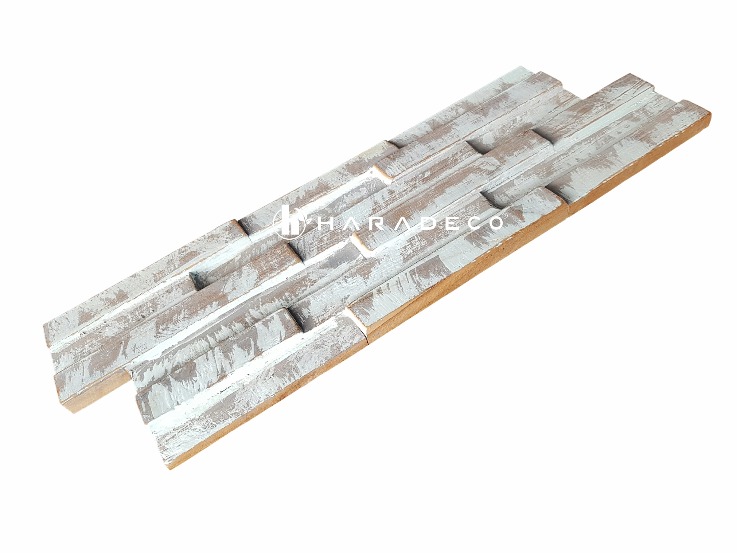 Wall cladding Splash Wave is made from new teak wood with a beautiful transverse motif finishing. Splash Wave is an ideal choice for adding more visual flair to plain walls by decorating them in bolder patterns.
